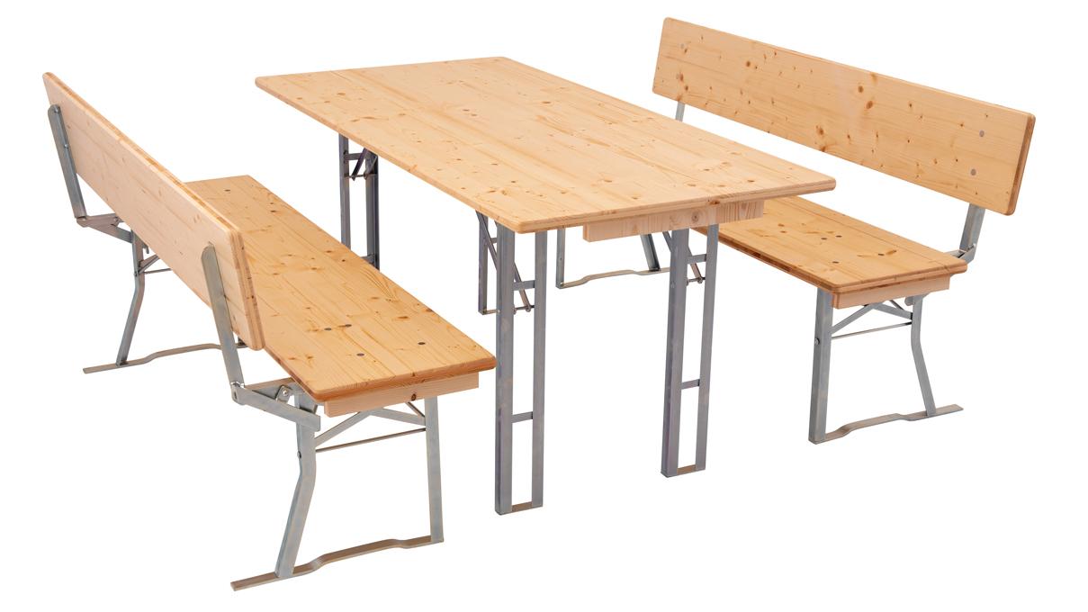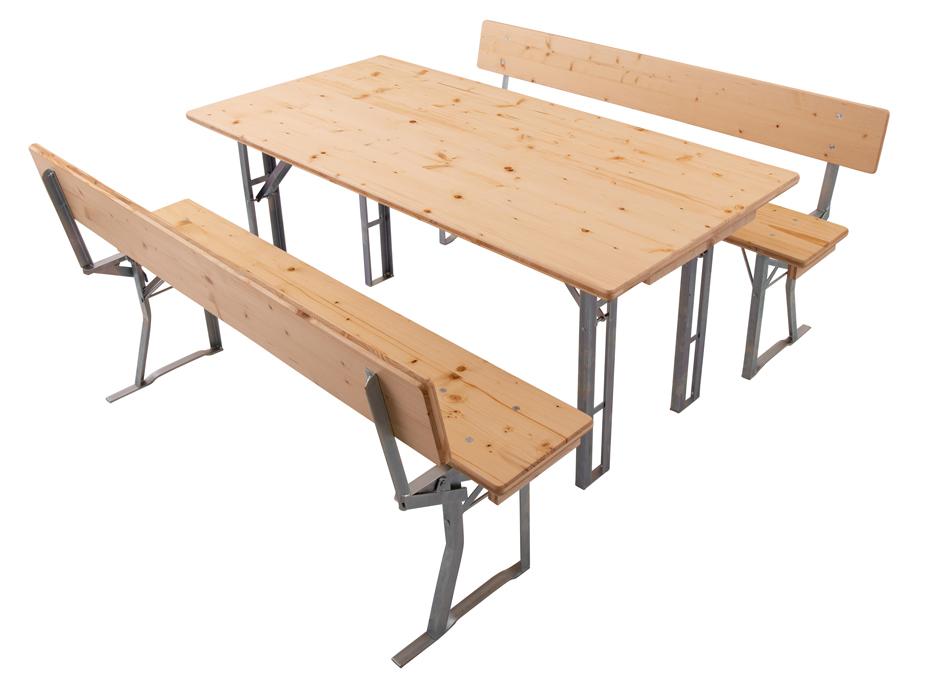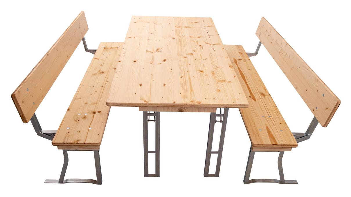 Als fabrikant van biertentensets kunnen wij elke bankbreedte tussen 29 cm en 40 cm maken voor banken met rugleuning. De eerste foto van het onderstaande bankstel heeft een bankblad van 40 cm met een rugleuning van 25 cm. De tweede foto toont een bankblad van 29 cm met een rugleuning van 19,5 cm. De gebruikte tafel is vierpoots met vier van onze universele tafelonderstellen model 206, deze tafelonderstellen kunnen in verschillende posities worden geplaatst. De opstelling van de tafelpoten wordt door ons frame-variant nr. 5 genoemd, afzonderlijk opgesteld of in een rij, alle door ons vervaardigde tafelframes werken perfect. In het geval van een vierkante opstelling is frame-variant nr. 5 absoluut noodzakelijk, omdat deze opstelling beenruimte creëert voor drie personen vooraan.