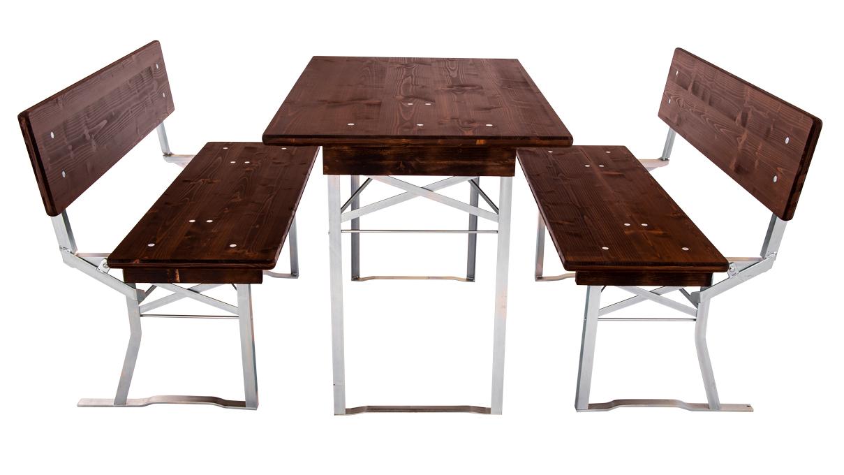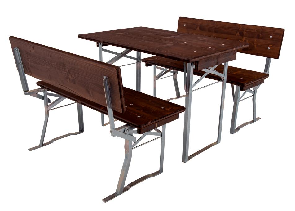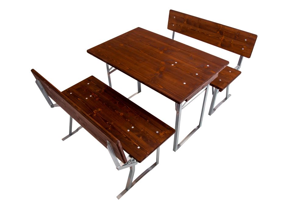 Twee kleine marquee sets op een rij maakt een grote marquee set. Onze modellen 170 met een lengte van 110 cm hebben extra brede zittingen en hoge rugleuningen, zijn opvouwbaar en kunnen individueel als kleine zitgroep worden gebruikt en als grote zitgroep worden samengesteld in de biertuin, feesttenten en catering bijzonder ruimtebesparend in gebruik en opslag. De tentset met rugleuning voor vier personen heeft gegalvaniseerde frames, d.w.z. een echte zinklaag die zeer slijtvast is. Heel vaak worden biertentensets online aangeboden met zinkkleurige frames, deze zijn alleen zinkkleurig geverfd, doen alsof het een galvanisatie is en kunnen gemakkelijk bekrast worden.