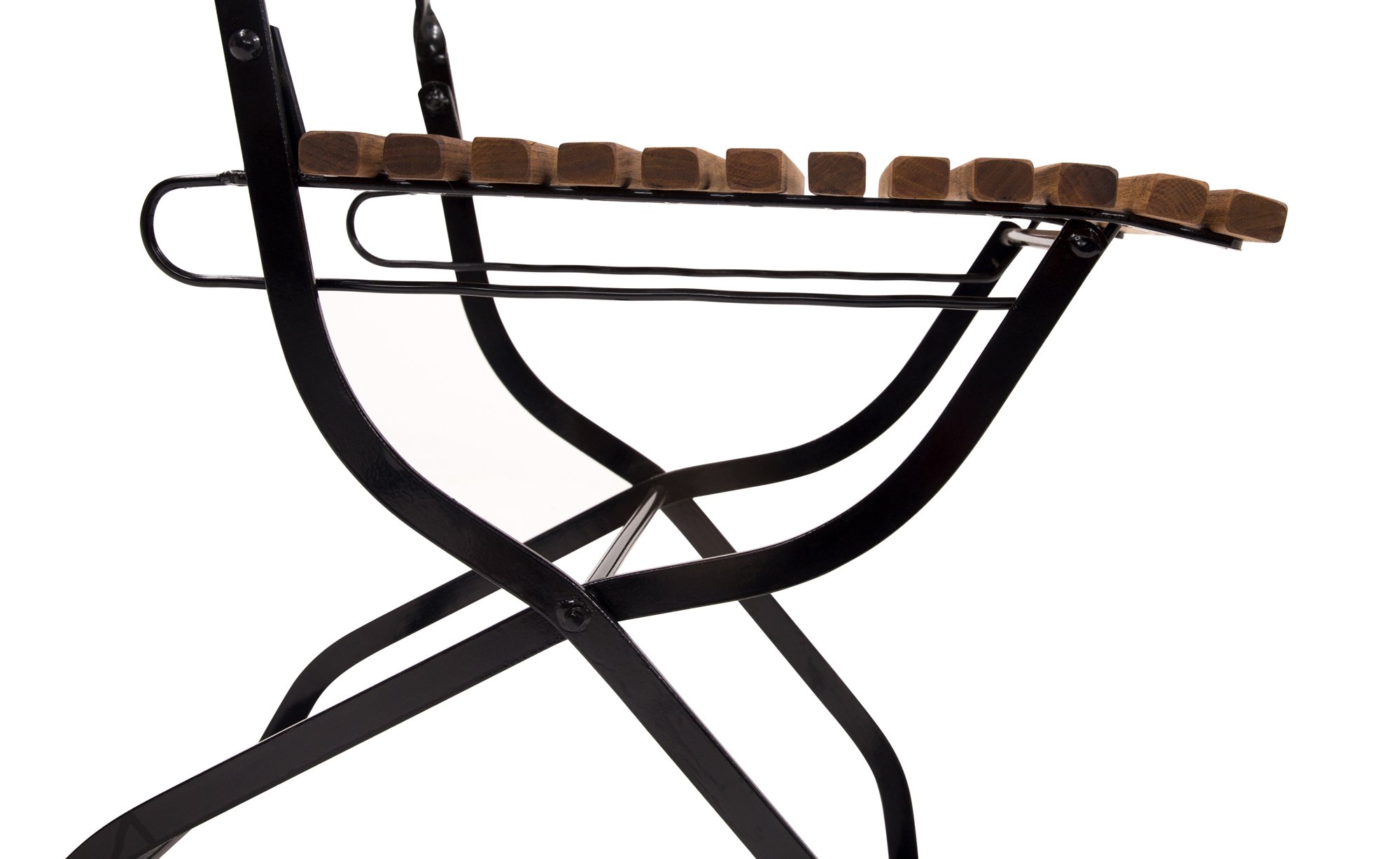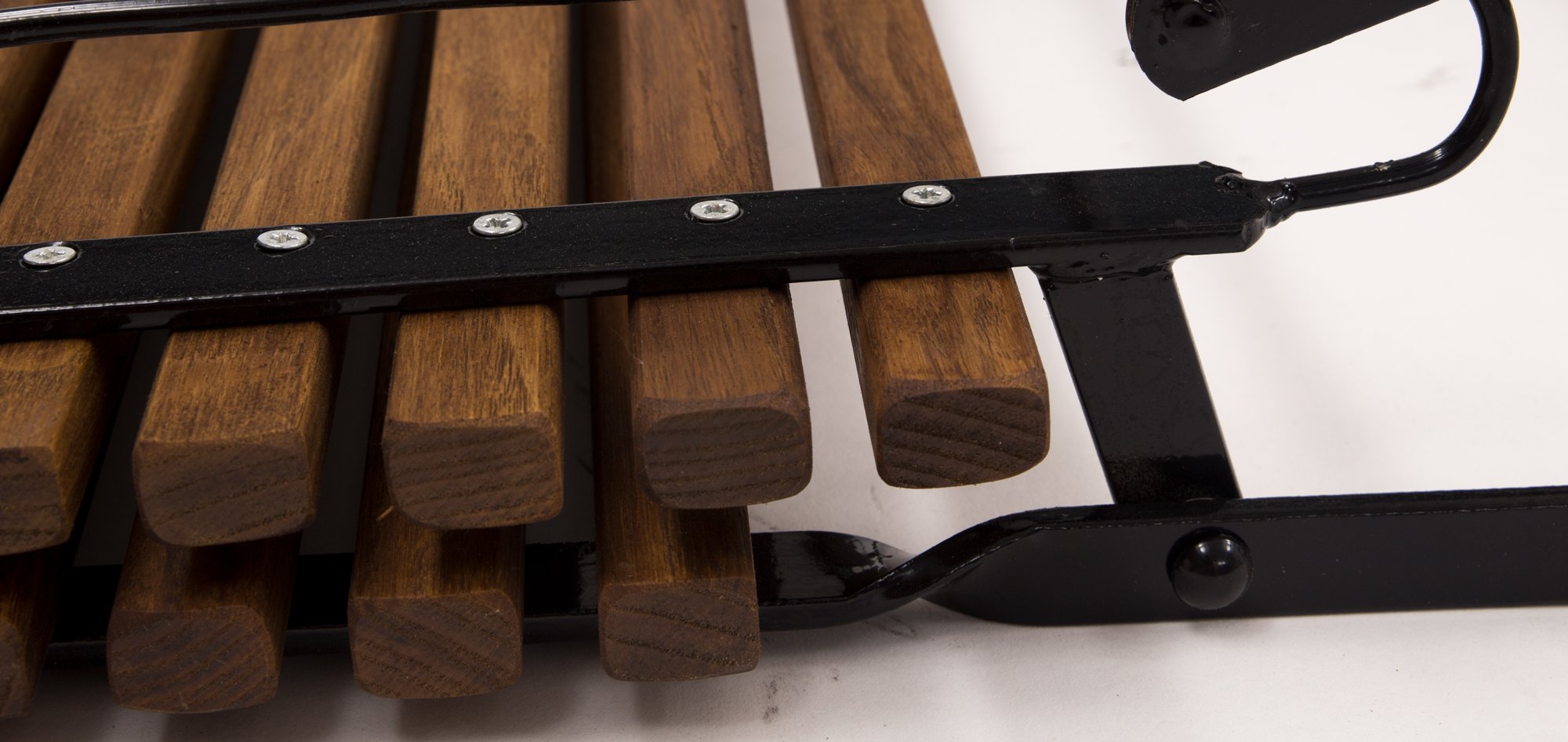 Onze biertuinmeubelen 11bgs met handgreep in de rugleuning, een rugleuning van 56cm hoog, zitting XXL 43cm lang en planken van robinia. Het houtoppervlak is behandeld met een niet afbladderende dunne laag beits. De frames zijn gemaakt van gegalvaniseerd bandstaal en gegalvaniseerd rondijzer met een extra zwarte poedercoating. Opgevouwen zijn ze op het dikste punt slechts 15 cm plat. Een grindstang voorkomt dat de stoelframes wegzakken in zachte grond. De platte stangen van de bandstalen stoelen zijn aan de voorkant naar beneden gebogen, zodat de twee voorste stangen naar beneden zijn verlaagd en een comfortabeler zit mogelijk maken. Er is zelden een voordeel zonder nadelen. Omdat de zitting en rugleuning meer hellen dan gewone biertuinmeubelen, zijn deze tuinmeubelen comfortabeler om langere tijd op te zitten. Ze zijn ook zeer geschikt om te dineren.
