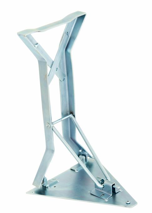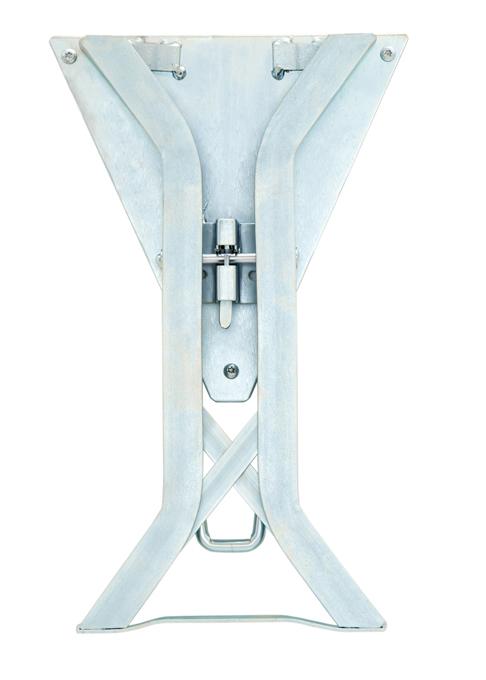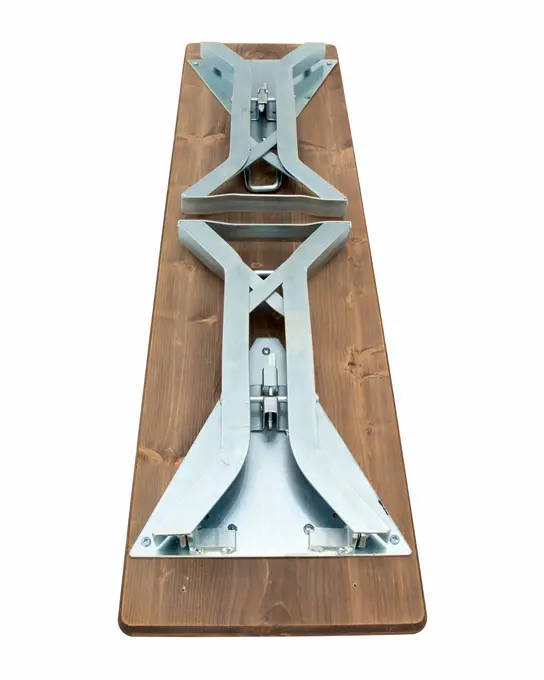 Opvouwbaar bierbankframe van brouwerijkwaliteit met standaardafmetingen. Het frame heeft een ander ontwerp maar dezelfde stabiliteit als onze standaard bierbankframes model 202 of ons model 207 met driehoekige ijzeren plaat.