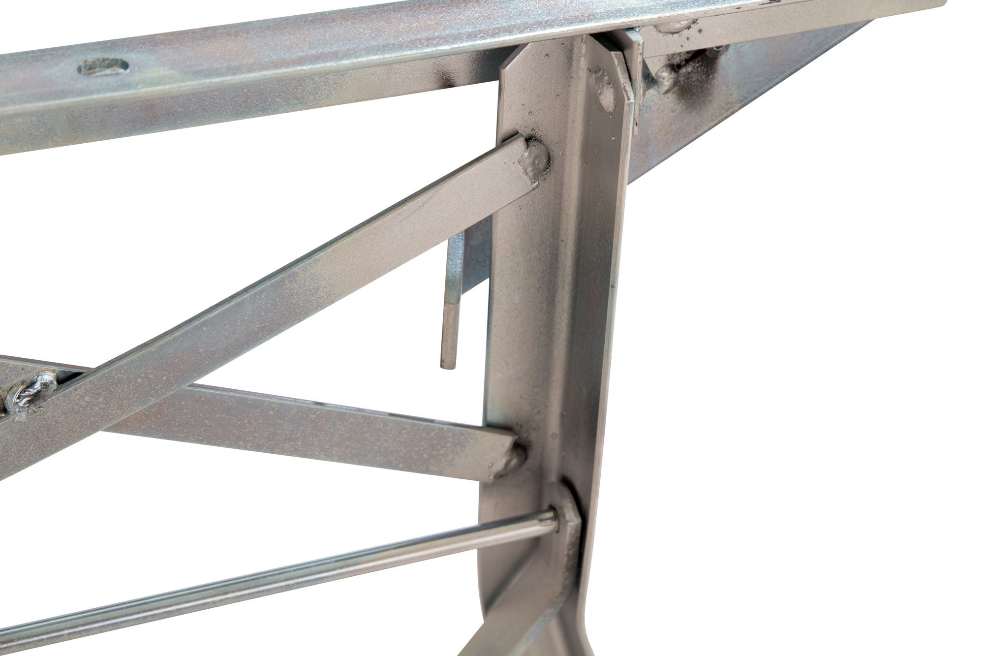 Voor het poedercoaten gebruiken we alleen gegalvaniseerde bierbankframes. Het beslag is gepoedercoat als de rugleuning open is, waardoor een zogenaamde spatschaduw ontstaat. De roestbescherming is op dit punt ook 100% gegarandeerd door het verzinken. Deze spatschaduw is niet zichtbaar als de banken rechtop staan.