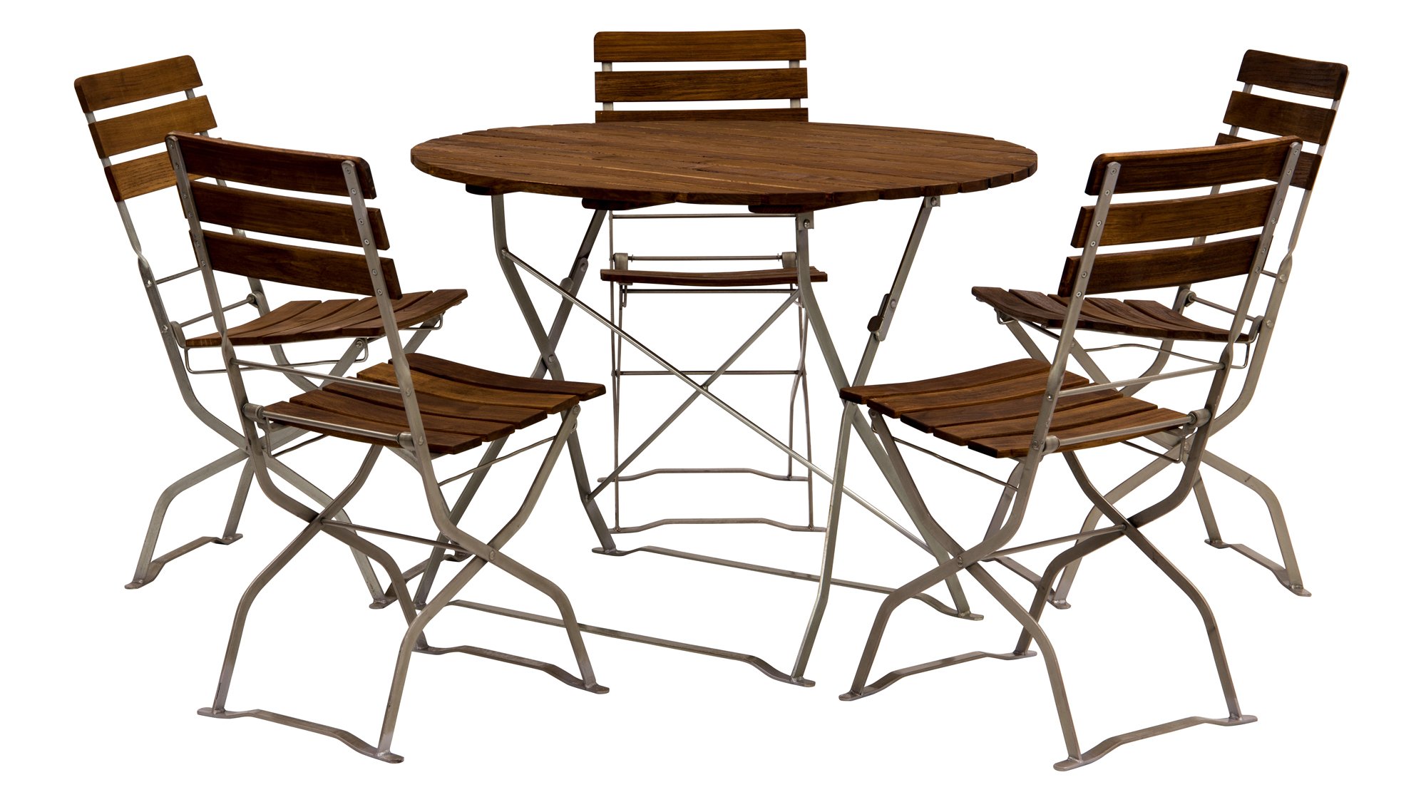 Bij ons kunt u klassieke biertuinmeubelen kopen met ronde tafels van 80 cm, 100 cm en 130 cm. Inklapbare stalen frames, tafelbladen en zittingen Robinia hout bruin geglazuurd weerbestendig en zeer stabiel. Ronde tafels met een diameter van één meter zijn optimaal voor vier tot zes personen. De frames van rondstaal en bandstaal zijn gegalvaniseerd en bovendien voorzien van een transparante poedercoating. De transparante poedercoating op het stalen frame is een extra bescherming tegen corrosie. Gegalvaniseerd ijzer heeft de neiging een zogenaamd patina te vormen in de buitenruimte. Het patina is een corrosie van zink dat de eigenlijke corrosiebescherming vormt. Omdat deze beschermlaag na verloop van tijd vlekkerig kan worden, hebben wij besloten de gegalvaniseerde ijzeren onderdelen te beschermen met een bijna onzichtbare transparante poedercoating.