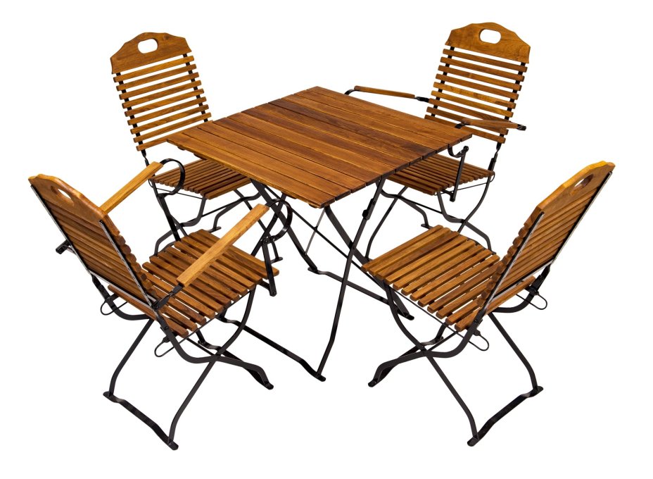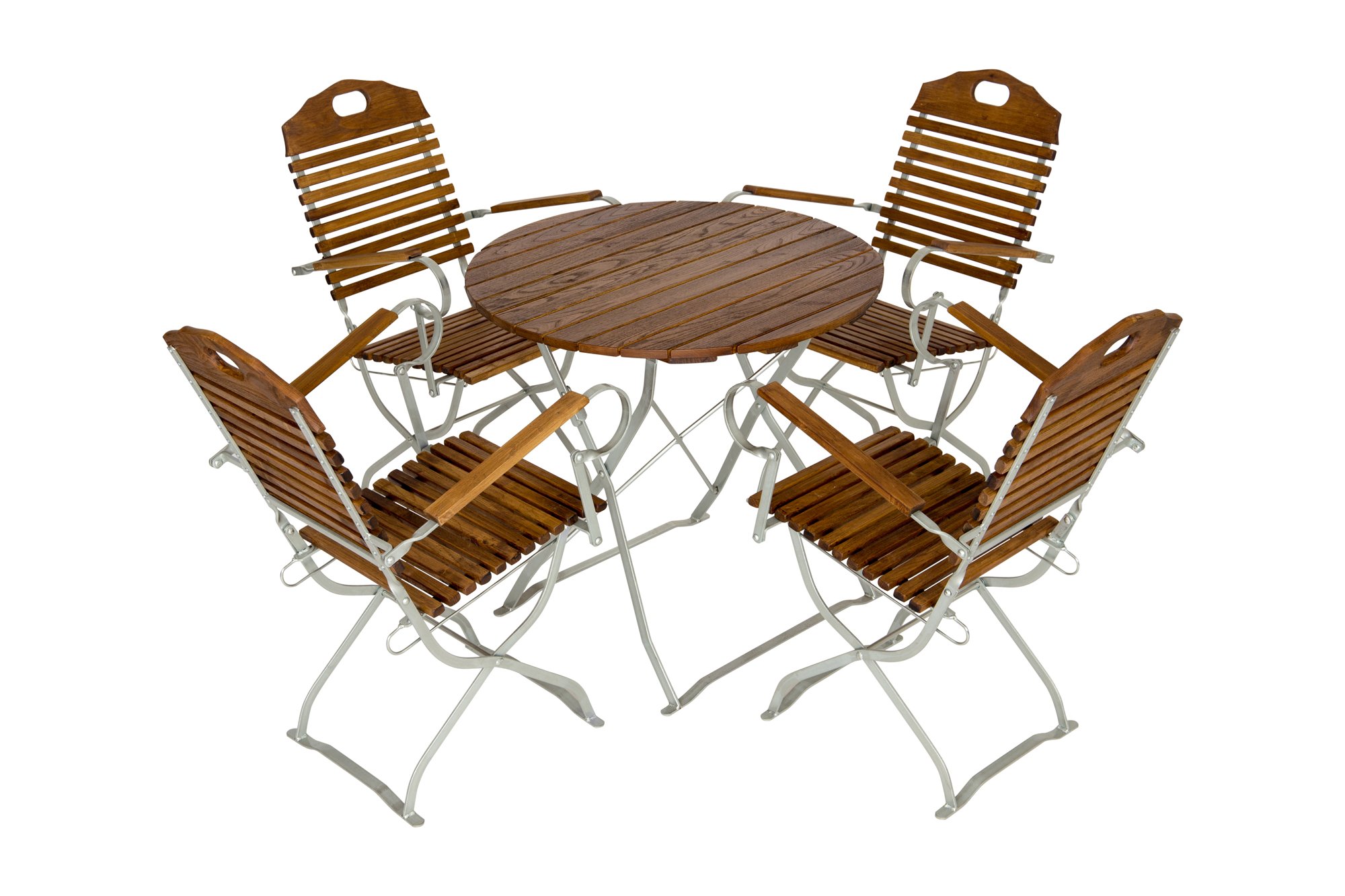 De zitgroep voor vier personen is een combinatie van biertuinmeubelen met biertuinstoelen, biertuinstoelen en biertuintafel. Wij bieden alle varianten te koop aan. U kunt alle biertuintafels combineren met alle varianten van onze biertuinmeubelen. De afgebeelde tuinmeubelen hebben allemaal een grindbalk en kunnen worden gebruikt op zachte en harde ondergronden. Voor gebruik op harde oppervlakken adviseren wij het gebruik van onze vloerbeschermers model 166 voor biertuinstoelen en model 167 voor biertuintafels. Om een uniform totaalbeeld te bereiken, kunnen de vloerbeschermers model 167 ook worden gebruikt voor tafels, stoelen en fauteuils. De vloerbeschermers worden eenvoudig met een hamer aangeslagen en zijn dus permanent bevestigd.