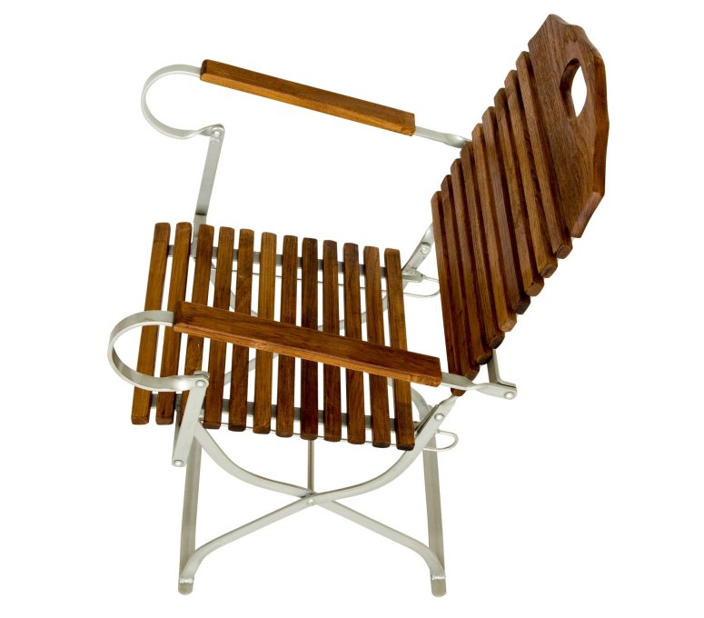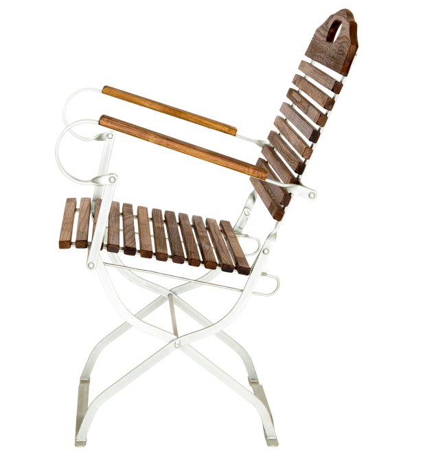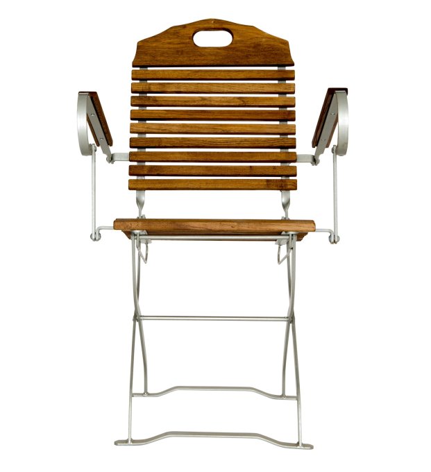 Deze biertuinmeubelen hebben een zeer hoge rugleuning die ook bijna tot de onderkant van de zitting reikt. Je zou een zeer lange arm nodig hebben om onder de onderste lamel van de rugleuning te reiken om de stoel met één hand te vervoeren.