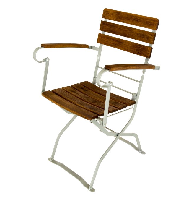 Terug naar het overzicht: Vouwbare bruin geglazuurde bier tuinstoelen met armleuning.