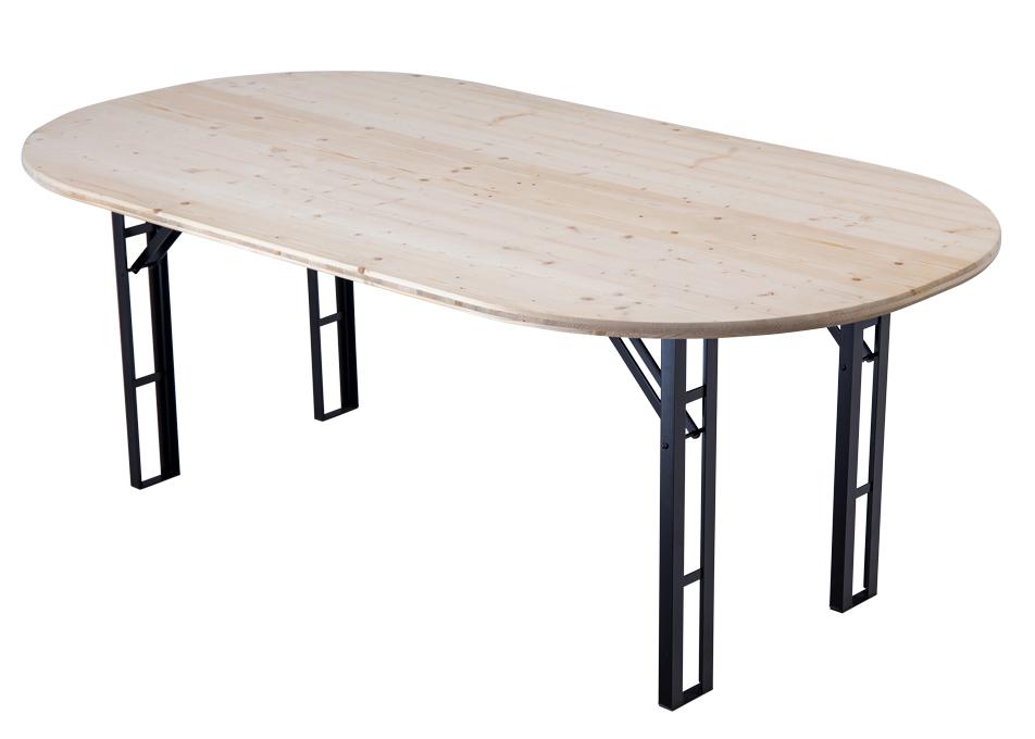 Ovale vierpoot biertafel gemaakt van breukvast drielaags houten blad. Elke zitplaats is belangrijk, vooral als je in de restaurant business zit. In drukke tijden telt elke zitplaats, een beetje minder omzet is misschien niet het probleem, maar wel of de gast zal terugkomen als ze hem niet konden bedienen wegens plaatsgebrek. Met een opklapbare bankettafel hoeft u uw cateringuitrusting niet te verspillen aan een buffet. De klaptafel kan in een paar eenvoudige stappen worden gemonteerd en gedemonteerd. De bankettafel is natuurlijk ook voor alle andere doeleinden te gebruiken, met banken als biertentstel of met stoelen als normale cateringtafel.