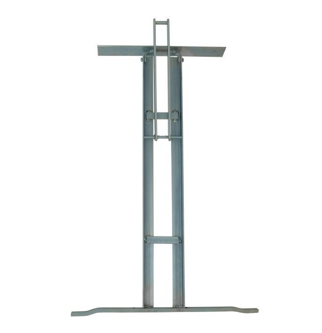 De linker tafelpoot is ons biertafelonderstel nr. 229 met een totale hoogte van 71,5 mm. Onder het linker frame en ook onder de snapsluiting voor het linker frame werd een houten strip van ca. 30 mm geschroefd, zodat de tafelpoot samen met de vastgeschroefde houten strip een totale hoogte van 74 cm heeft en in ingeklapte toestand parallel over het andere frame vouwt. Aan de rechterzijde is ons tafelframe nr. 223 met driehoekige ijzeren plaat en schakelslot gelast. Beide onderstellen zijn dan even hoog, de tafel staat recht en is zonder beperkingen inklapbaar.
