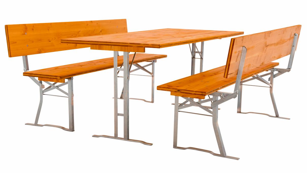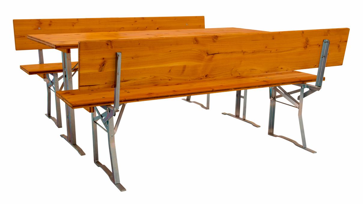 De biertentset bestaat al sinds de jaren 1950, meestal in een set van één tafel en twee banken. Wij hebben ons erop toegelegd het geheel een beetje te verbeteren en het presentabel te maken voor de luxe gastronomie. Wij zijn de enige fabrikant die in staat is een grote verscheidenheid aan biertentsets te produceren en tijdig te leveren. Met ons CNC-gestuurde houtbewerkingscentrum kunnen we alle maten en vormen produceren. Speciale maten kennen wij niet, want wij produceren ze dagelijks volgens de wensen van de klant. Al het hout dat wij gebruiken is afkomstig uit duurzame Europese bosbouw. Innovatieve frameconstructie van de tafelpoten met veel beenruimte, bierbankframes zonder struikelgevaar met 10 mm vlakke slede voor ronde biertentsets en bierbanken met rugleuning. In veel biertuinen komen we biertafelsets tegen met roestige schroeven, onze biertafelsets zijn verkrijgbaar met roestvrijstalen en zuurbestendige schroeven.