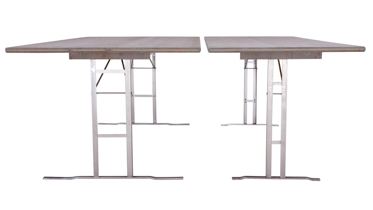 Onze afgebeelde biertafels hebben een T-vormig tafelonderstel, deze onderstelvariant is bijzonder stabiel en biedt de grootst mogelijke beenruimte. De 100 cm brede biertafel heeft het tafelframe model 210 dat geschikt is voor tafels van 80 cm tot 100 cm. De afgebeelde tafel van 80 cm heeft het biertafelonderstel model 223, deze tafels zijn ook verkrijgbaar met het vrijwel identieke beslag model 229 in een lage opstelhoogte met een tafelhoogte van 74 en 71 cm.