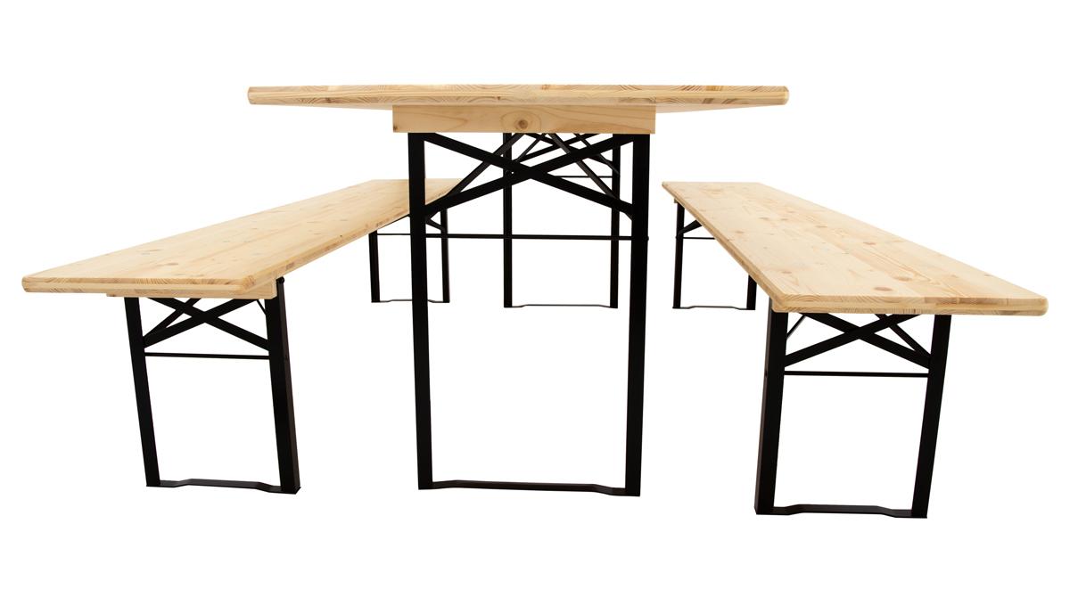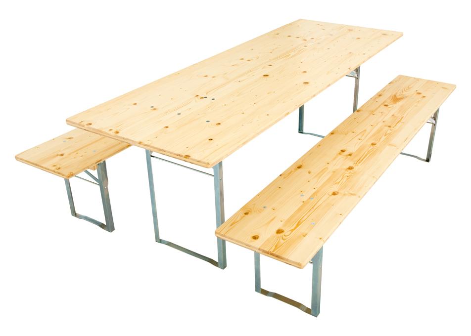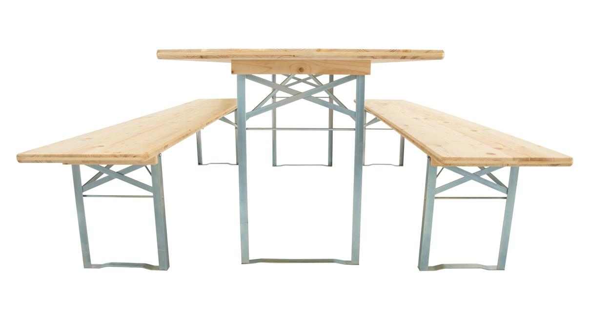 De bierbanken hebben verstevigde bankframes met een breedte van 32 cm en kunnen worden bezet door maximaal vijf personen per bank. Mochten uw gasten op het idee komen om een bankje neer te zetten en gezellig met 10 mensen rug aan rug op zo'n bankje plaats te nemen dan hoeft u niet bang te zijn want deze bierbanken zijn ertegen bestand. De brouwerijset model 169 gegalvaniseerd in XXL-formaat zonder rugleuning is ook verkrijgbaar als Biertentstel model 176 met rugleuning beschikbaar.