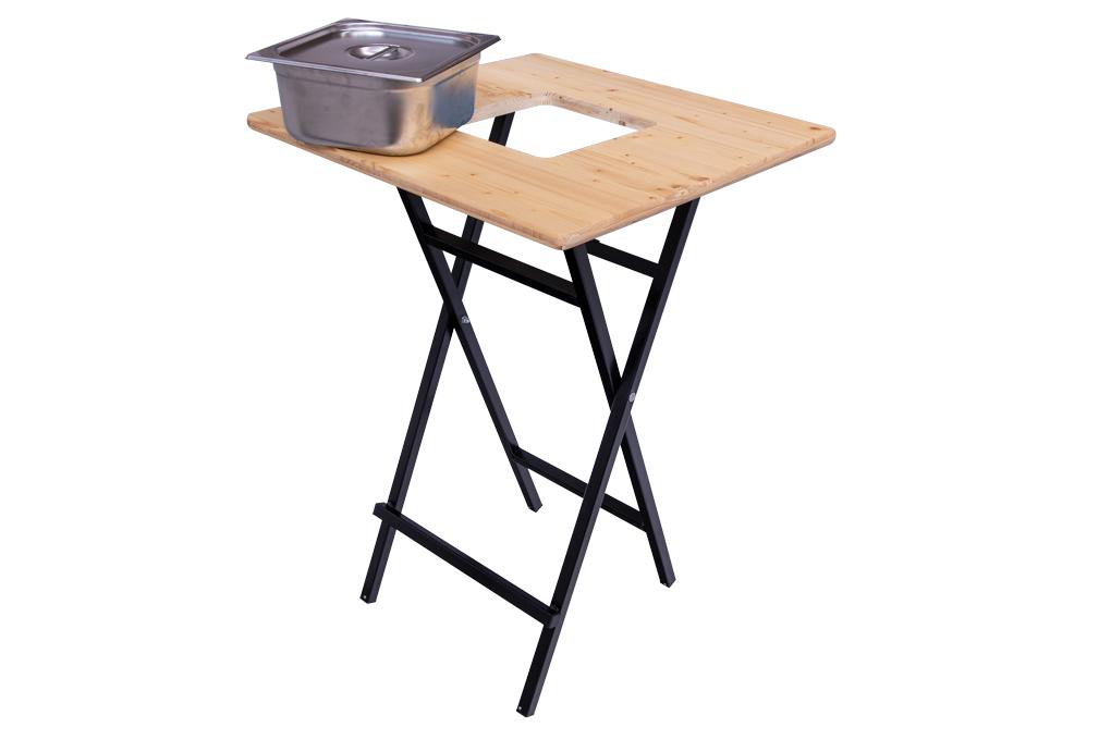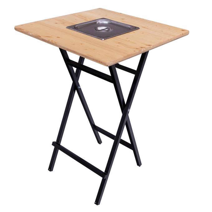 is gebleken dat deze statafel optimaal is voor diverse toepassingen. Gastronomiebakken hebben een maximumdiepte van 20 cm, komen niet in contact met de dwarsbalken en kunnen zonder belemmering in de meest uiteenlopende afmetingen in het tafelblad worden geïntegreerd. Een op maat gemaakt deksel om de uitsparing af te sluiten wordt ook meegeleverd