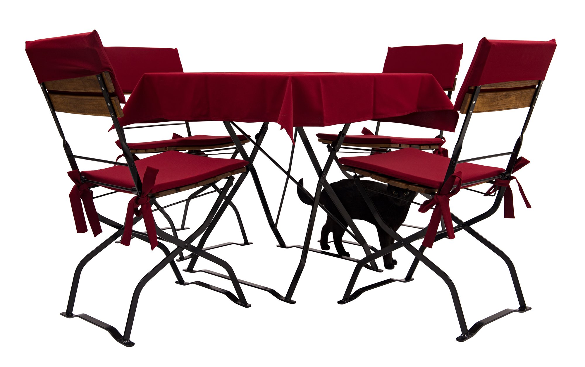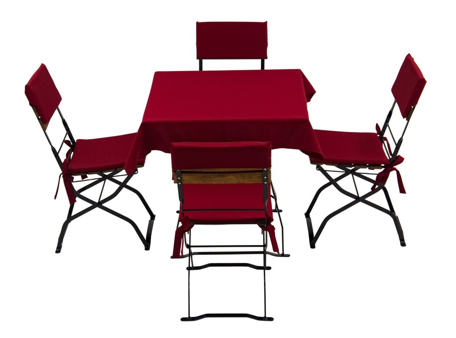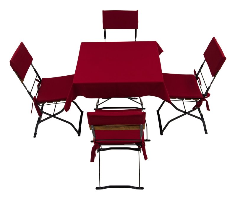 Wij bieden speciale, zeer hoge kwaliteit zitkussens en tafelkleden te koop aan voor onze opvouwbare biertuinmeubelen. Onze zitkussens zijn ook verkrijgbaar voor onze stapelbare stoelen van robiniahout. U kunt de stoelhoezen met knopen of lussen vastmaken zoals u wilt. Als een lus losraakt, hangen de linten naar beneden, raken ze de grond niet en worden ze niet vuil. De kussens voor de rugleuningen zijn precies op maat gemaakt. De kussens voor de rugleuning en de bekleding van de zitting zijn in verschillende kleuren verkrijgbaar. De hoes en het tafelkleed zijn gemaakt van 100% polyester, kunnen worden gewassen op 40 graden en zijn strijkvrij. Voor de inleg is een twee centimeter dik schuim van hoge kwaliteit gebruikt. Dit schuim wordt ook gebruikt voor de productie van matrassen.