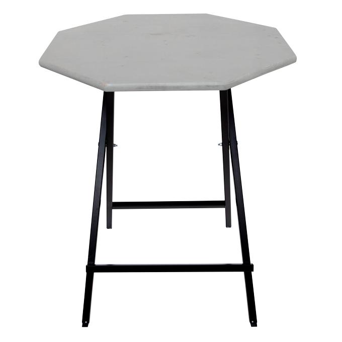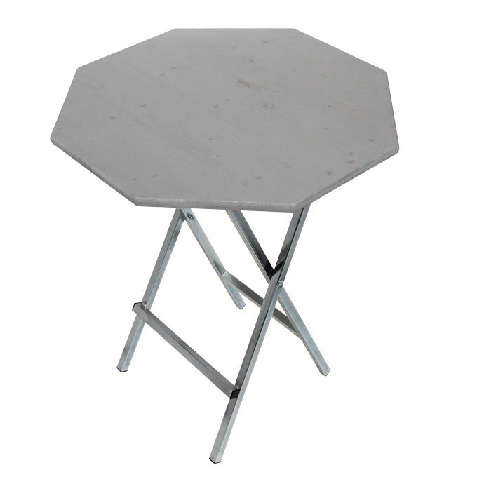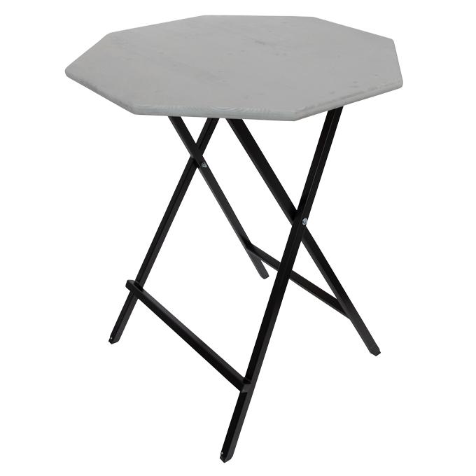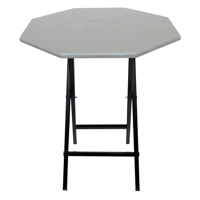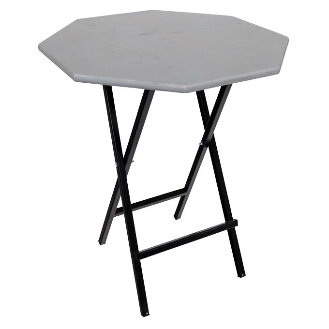 De achthoekige bartafel met drielagig houten blad heeft een tafel diameter van 90 cm. Het oppervlak van het tafelblad is geglazuurd met de kleur RAL7038, deze kleur is zeer populair en behoort tot ons standaardglazuurassortiment. Er zijn verschillende inklapbare hoge tafel frames beschikbaar. Model 214 heeft een voetafdruk van ca. 74 cm X 74 cm en is ideaal voor tafelbladen met een diameter van 90 cm tot 120 cm. Model 215 heeft een voetafdruk van ca. 54 cm X 54 cm en is optimaal voor tafelbladen met een diameter van 70 cm tot 90 cm.