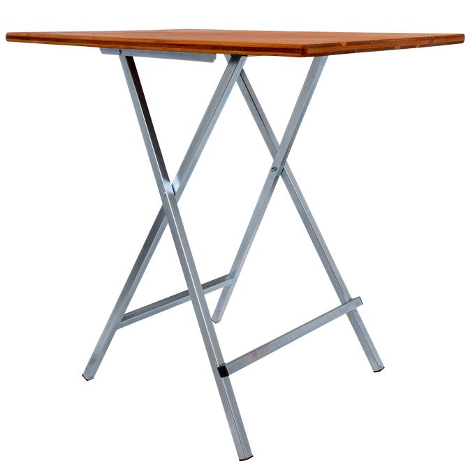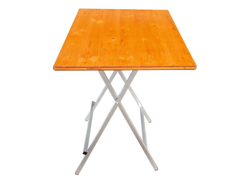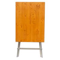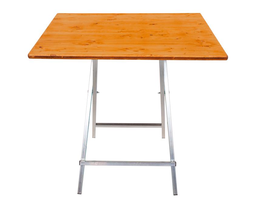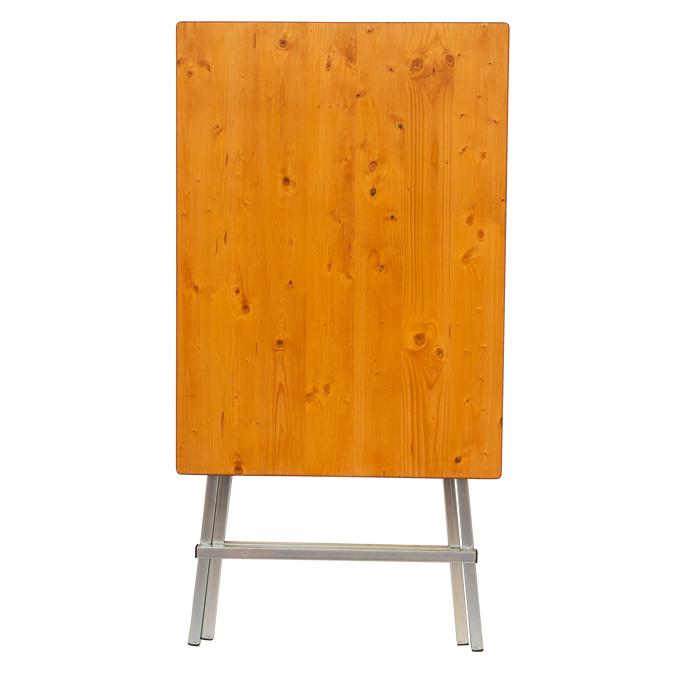 De gebruikte houten tafelbladen zijn onbreekbaar in de lengte en in de breedte. In het geval van de hoge tafel in de afbeelding is het rechthoekige tafelblad dwars op de klaprichting gemonteerd. De kruiselingse assemblage neemt aanzienlijk meer ruimte in beslag wanneer zij in opgevouwen toestand wordt opgeborgen. Het door ons gebruikte tafelblad heeft geen latten nodig die van onderen kruiselings zijn aangebracht om het te stabiliseren, in tegenstelling tot conventionele houten tafelbladen met één laag. Verderop op de foto's is het tafelblad in de lengterichting van de vouwrichting gemonteerd. Het is louter een kwestie van smaak en heeft geen nadelen wanneer de plaat in de lengterichting van de vouwrichting wordt gemonteerd.