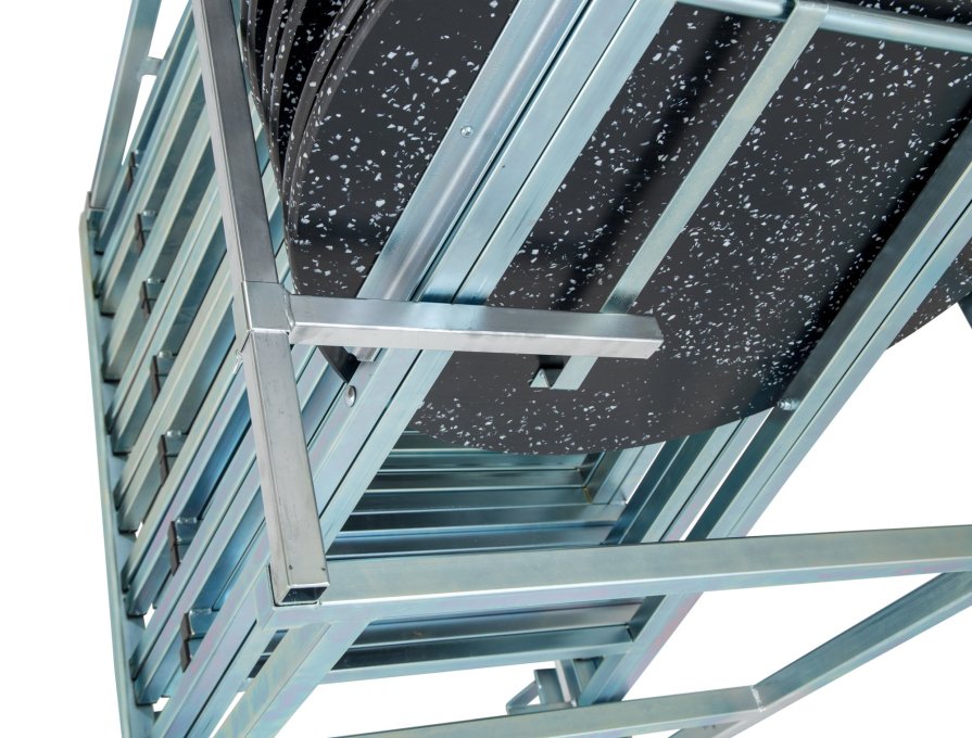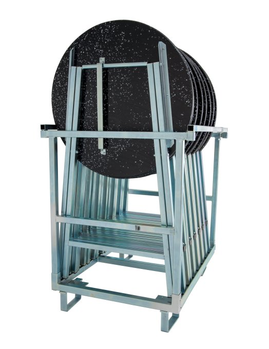 Het transportrek is gegalvaniseerd, het kan geladen worden met maximaal 16 inklapbare bartafels. Een traploze vergrendeling aan de boven- en onderkant zorgt ervoor dat niets kan kantelen tijdens het transport, zelfs als de transportkist niet volledig gevuld is. Op elke hoek staat een voet in de vorm van een slip. Deze slede is geschikt om het transportrek met de vork van een vorkheftruck op te pakken. Het kan echter ook in de lengte of in de dwarsrichting worden opgepakt met een smalle pallettruck.