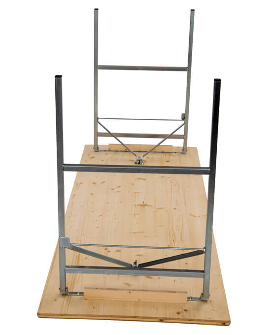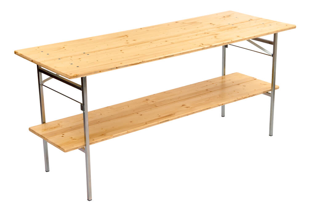 De toonbanken zijn zeer stabiel, inklapbaar en verrijdbaar zoals biertafels, deze toonbanken passen samen met biertentsets in transportkisten en zijn het meest geschikt als verhuurmeubilair.